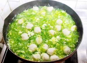 海菜加入白粥中煮,搭配蝦仁或魚片。