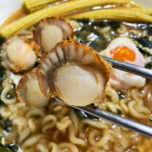 加入帆立貝快速翻炒約2-3分鐘,至貝肉呈現微焦黃。