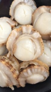 將帆立貝加入奶油白醬或蕃茄醬義大利麵中同炒。
